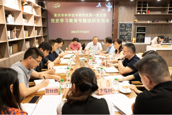 7月20日下午,院机关第一团支部在院职工书屋召开组织生活会,专题学习贯彻习近平总书记“七一”重要讲话精神。凯发k8官网书记何平以普通党员身份参会,市委第十七巡回指导组组长王增恂、副组长伯再庆、成员龙红兵列席指导,第一团支部全体党员参会。